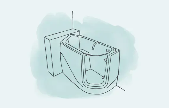 Eine weitere niedrigschwellige Umbaumaßnahme im Bad ist der Einbau einer Tür oder eines Einstiegs in Ihre bestehende Badewanne. Dadurch reduzieren Sie die Stolper- und Sturzgefahr. Durch Haltegriffe können Sie die Badewanne mit Tür noch sicherer gestalten.